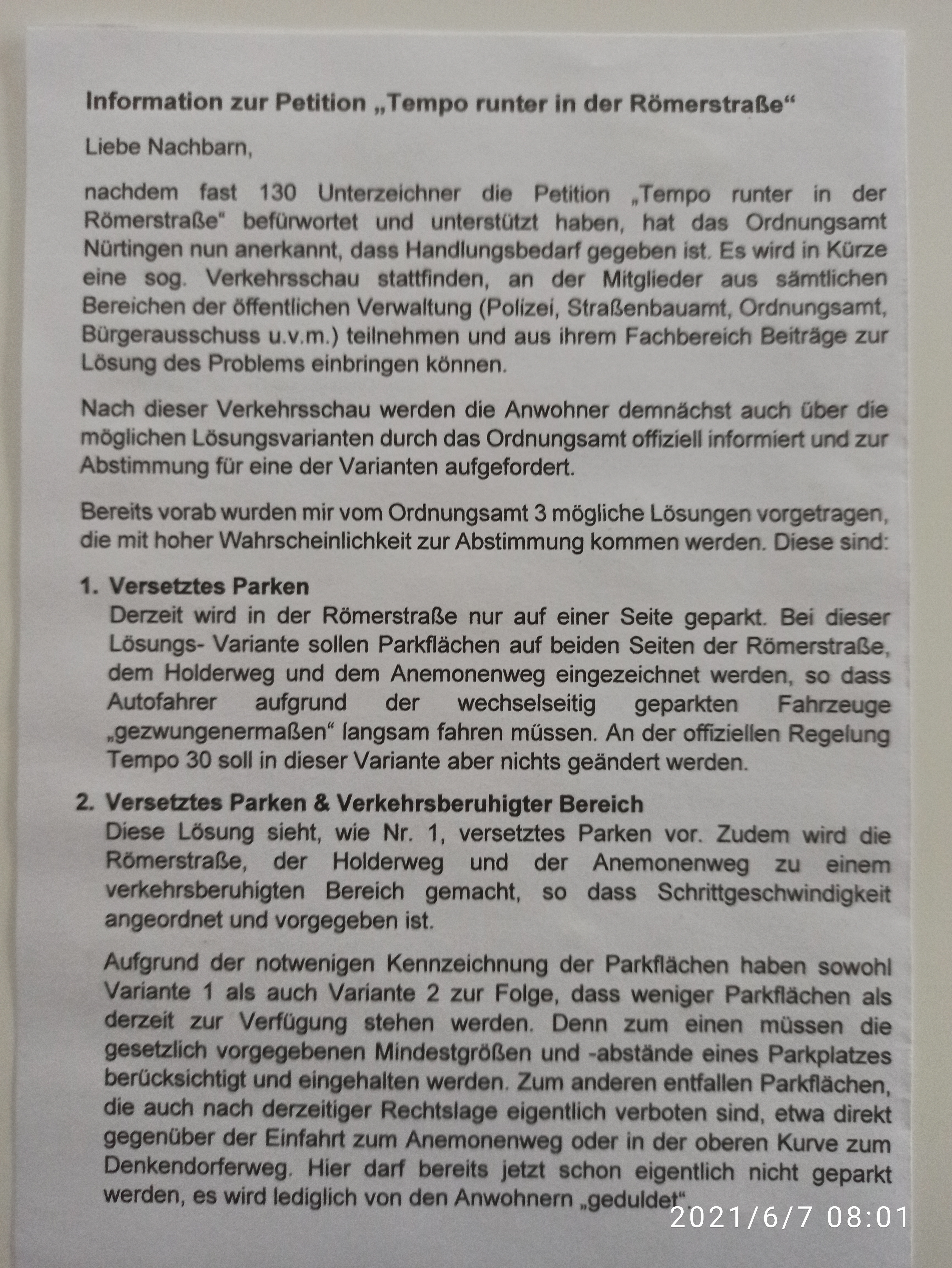 Alle Anwohner der Römerstraße, des Anemonenwegs und des Holderwegs erhalten in den nächsten Tagen einen Flyer im Briefkasten, der über die weiteren Fortschritte informiert. Der Flyer ist auch dieser E-Mail beigefügt. Bei Fragen bitte gerne jederzeit Kontakt mit mir aufnehmen.