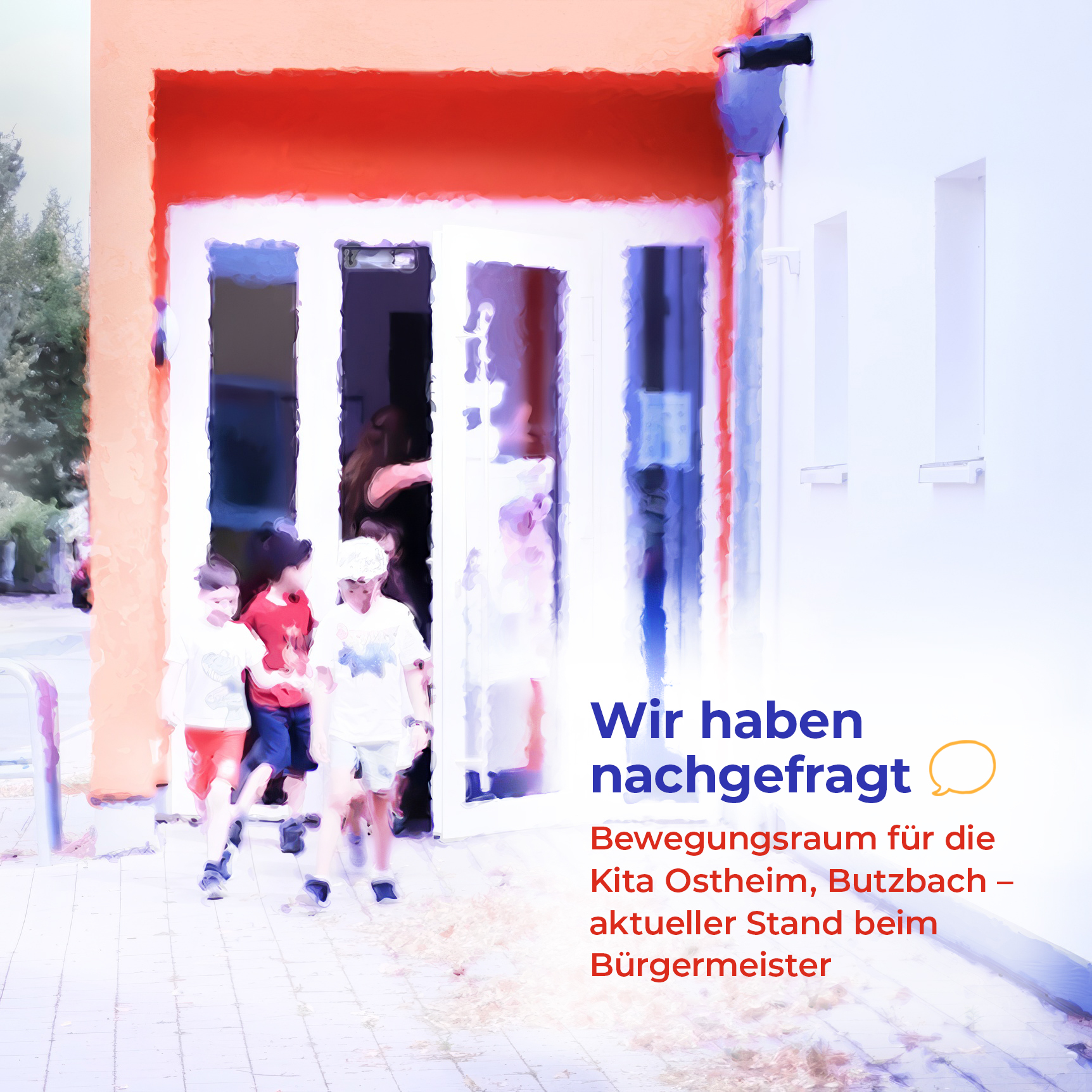 wir möchten Ihnen ein Update zu unserer Initiative “Bewegungsraum für die Kita in Ostheim” geben. Zunächst möchten wir uns herzlich für Ihre bisherige Unterstützung und das Engagement bedanken – gemeinsam haben wir bereits viel Aufmerksamkeit auf die Situation gelenkt.