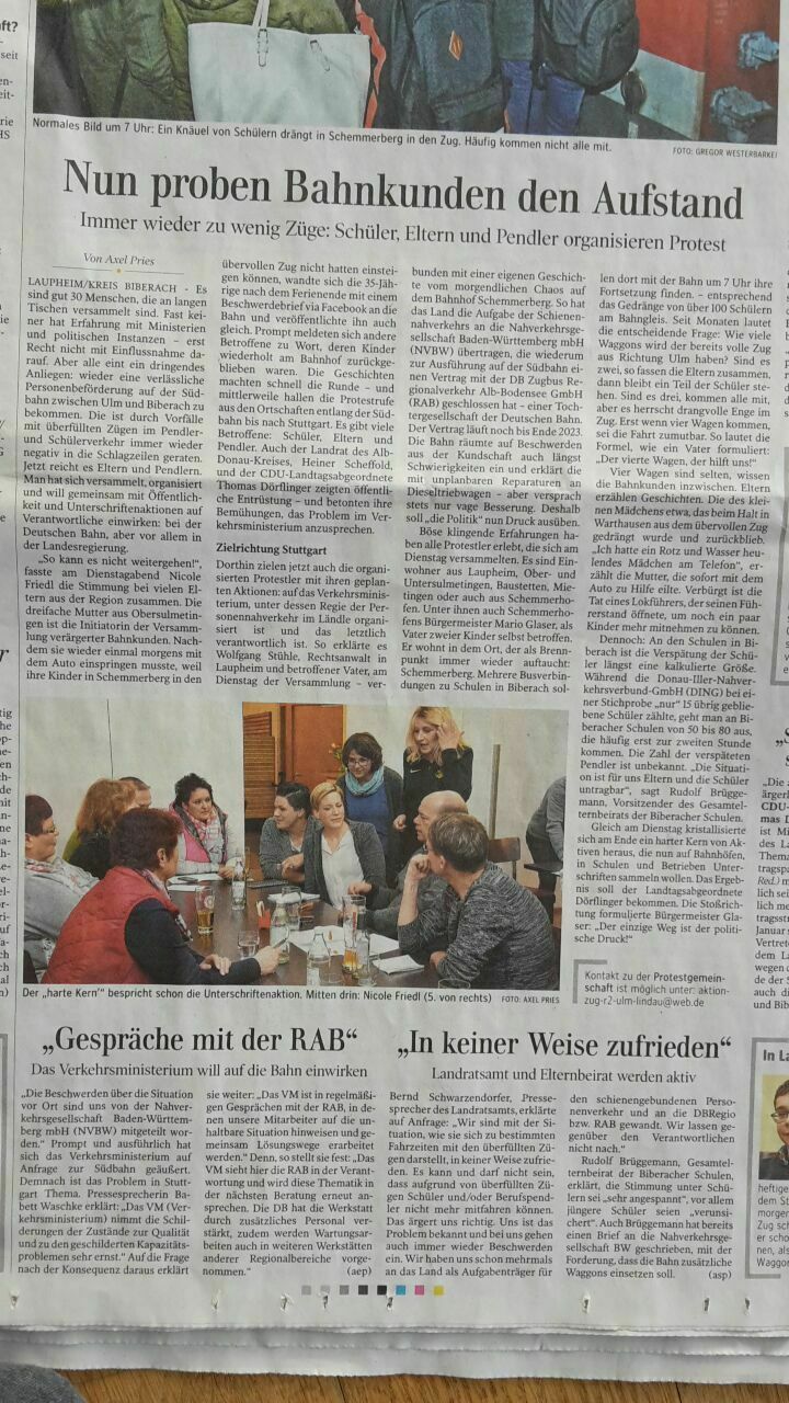 Artikel vom 12.01.2018 „Untragbare Zustände im Bahnverkehr Ulm-Biberach“