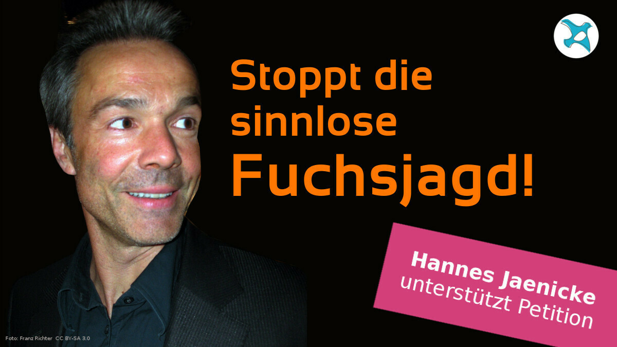 Aktuell gibt es ein Video von dem Schauspieler & Aktivisten Hannes Jaenicke, das Ende der Fuchsjagd fordert und die Petition unterstützt. Dieses Video soll gemeinsam mit der Petition die Runde in den sozialen Medien machen. So viele Menschen wie möglich sollen dieses Video teilen, um noch mehr Aufmerksamkeit und Druck zu erzeugen. Sie können den Videobeitrag auf der Facebookseite von openPetition angucken/teilen oder per Direktlink: