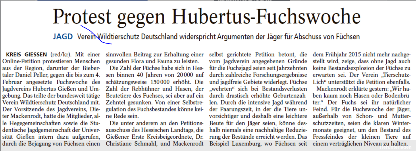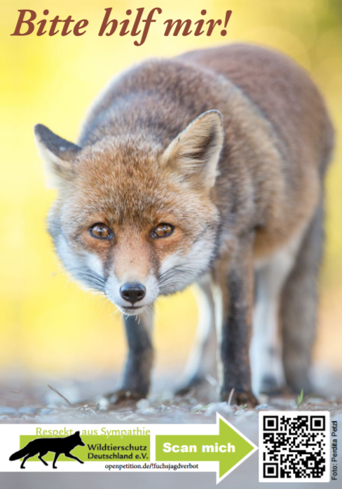 helft uns, gegen die unsägliche Fuchsjagd vorzugehen. Dazu hat Daniel anlässlich unserer Petition gegen die Fuchsjagd eine Plakat-Aktion vorbereitet, die aber auch in allen anderen Regionen in Deutschland funktioniert.