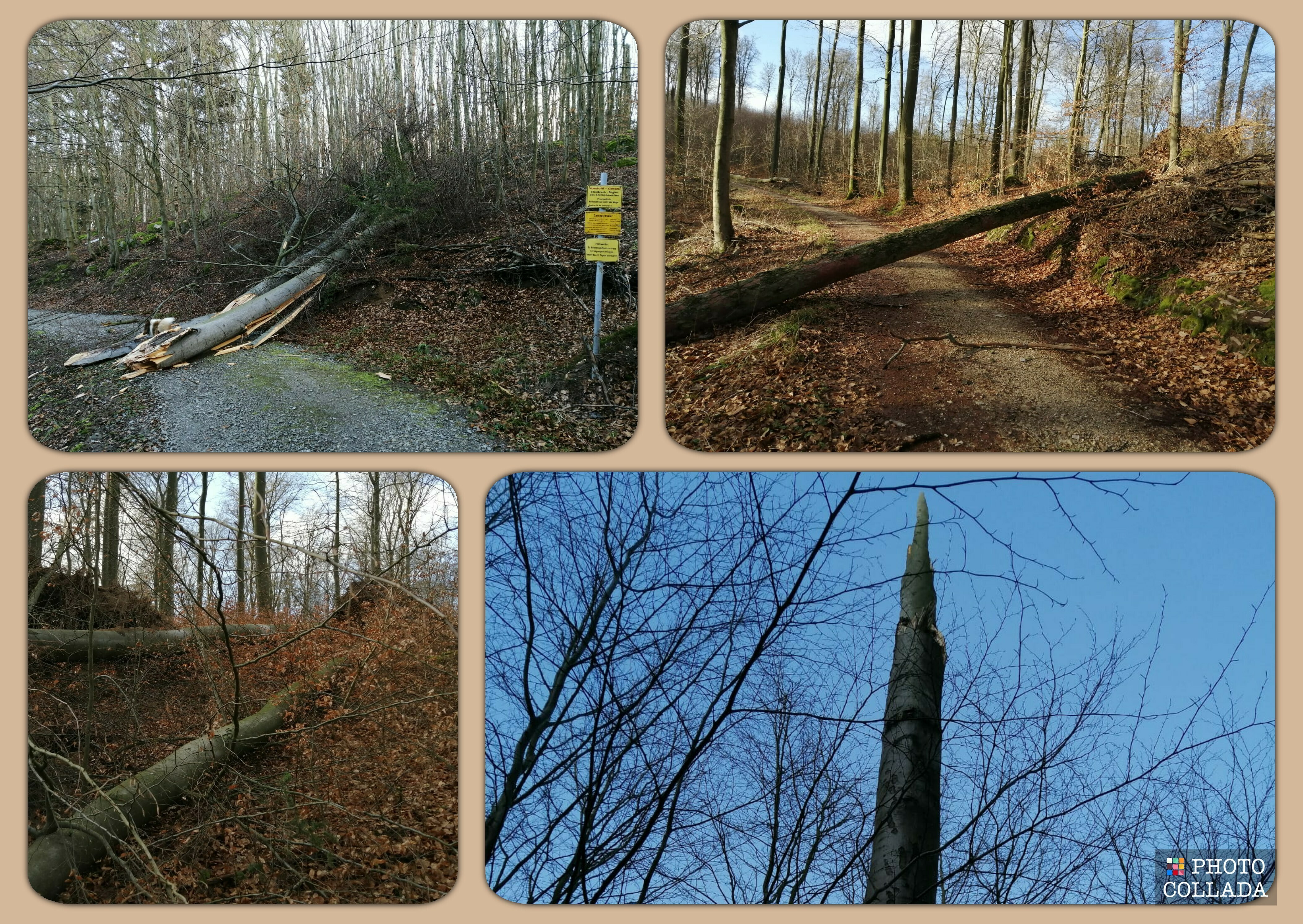 Ein abgebrochener Baum, 4 Buchen und ein Nadelbaum entwurzelt!