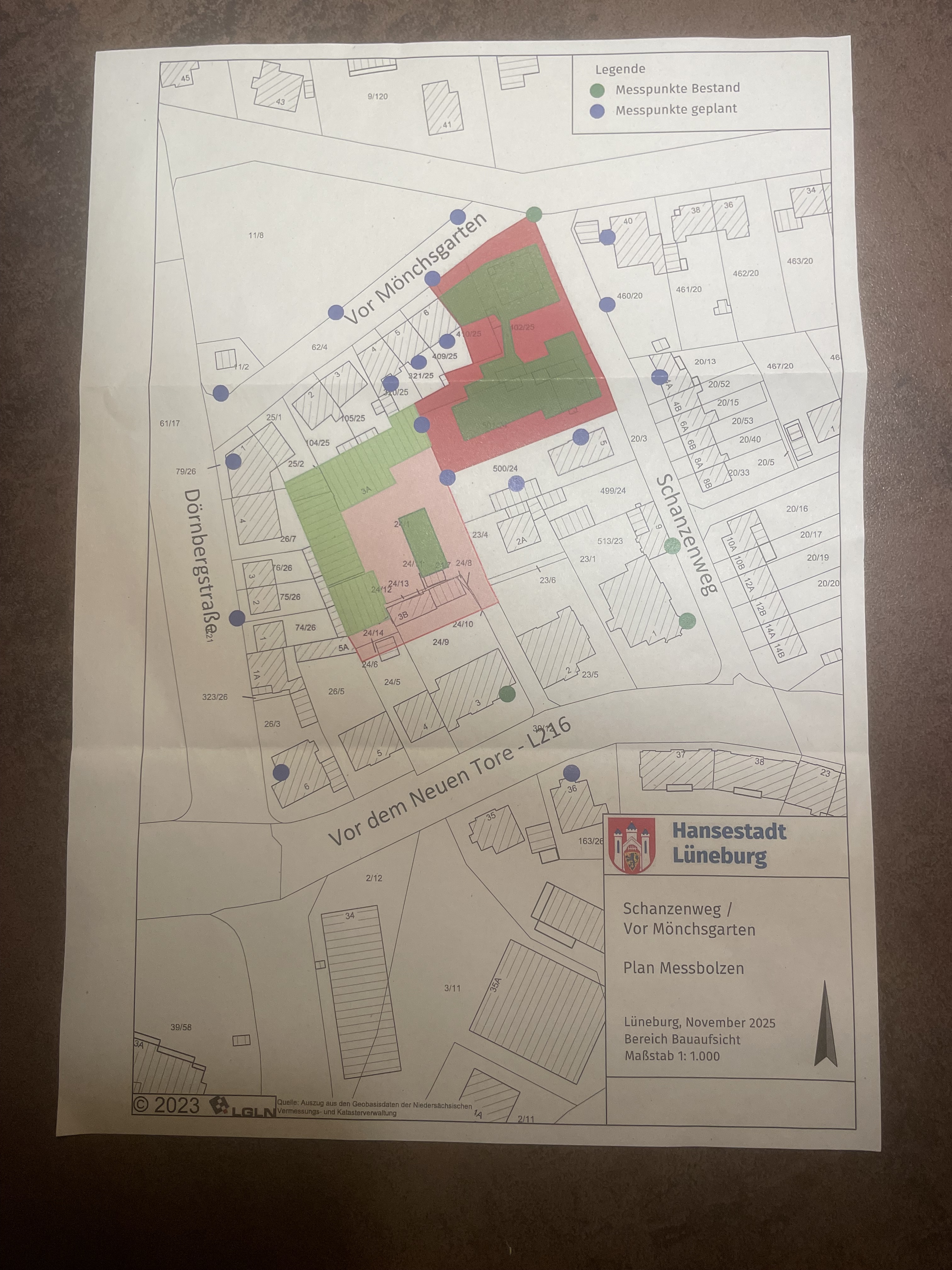 An die anliegenden Bewohner ist ein Informationsschreiben über die geplanten Messbolzen zugestellt worden , wann diese gesetzt werden und ob es die Möglichkeit für noch mehr Setzungen von Bolzen gibt, wurde leider keine Information mitgeteilt.