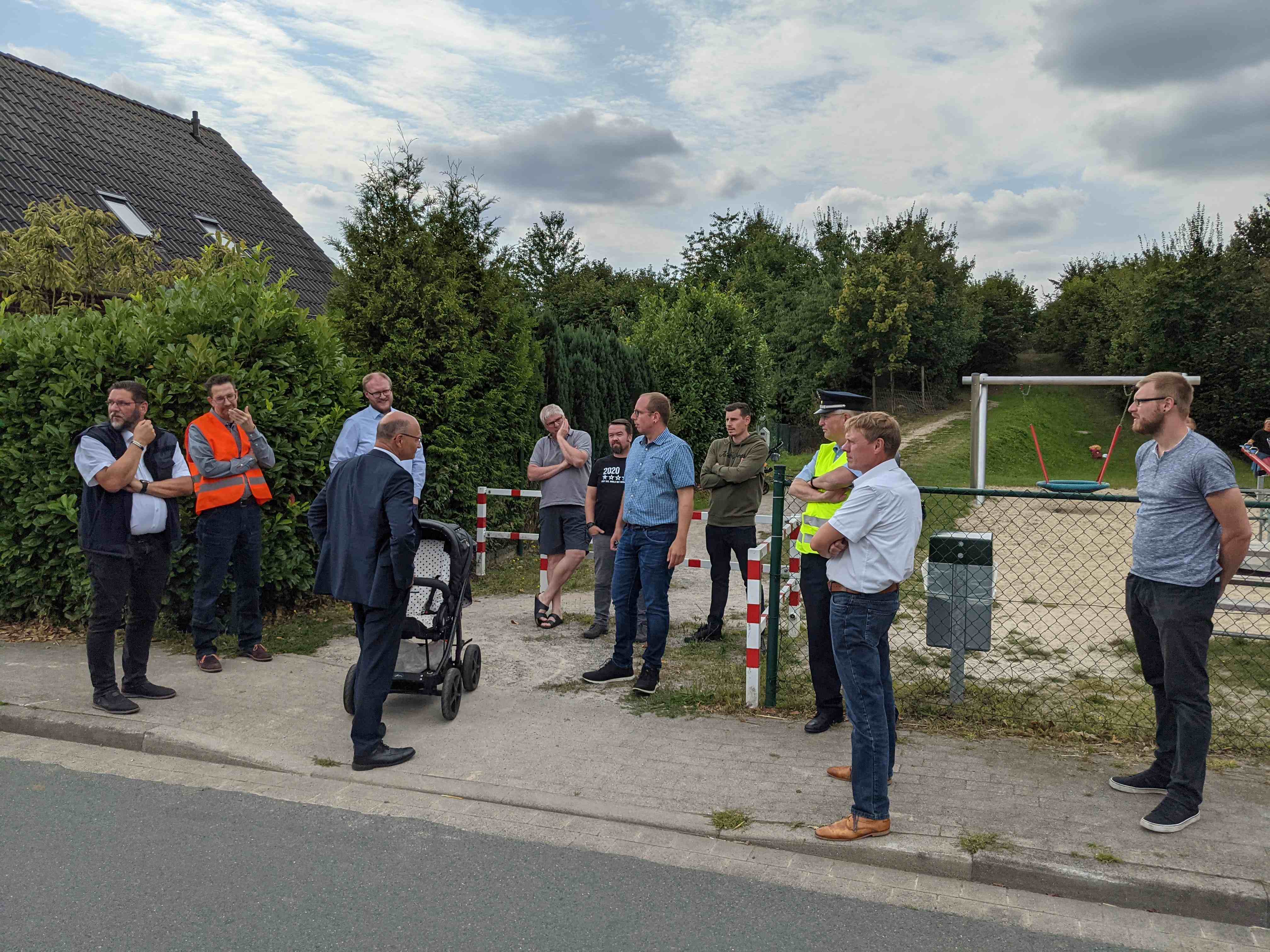 Mit an seiner Seite waren neben betroffenen Anwohnern und den Initiatoren der Petition, Reiner Brandt und Andreas Lohnmann, Hr. Möllers (Straßenverkehrsamtsleiter Kreise Steinfurt), Hr. Fehr (Straßenbauamt Kreise Steinfurt) sowie Hr. Bauland (Kreispolizeibehörde). Auch Hr. Brüger (Leiter des Ordnungsamtes Lienen) und der Kreistagsabgeordnete der SPD Matthias Himmelreich, nahmen sich Zeit für das Anliegen der Anwohner.