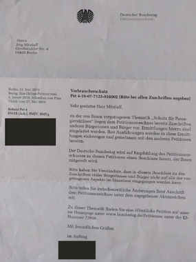 Nachricht zu einer abgeschlossenen Petition 10.07.2019, 12:27 Liebe Unterstützende, es gibt bereits inhaltsgleiche Petitionen. Diese sind auf der Plattform des Bundestages zu finden. Nähere Informationen finden Sie im angehängten Schreiben. Herzliche Grüße Ihr openPetition-Team