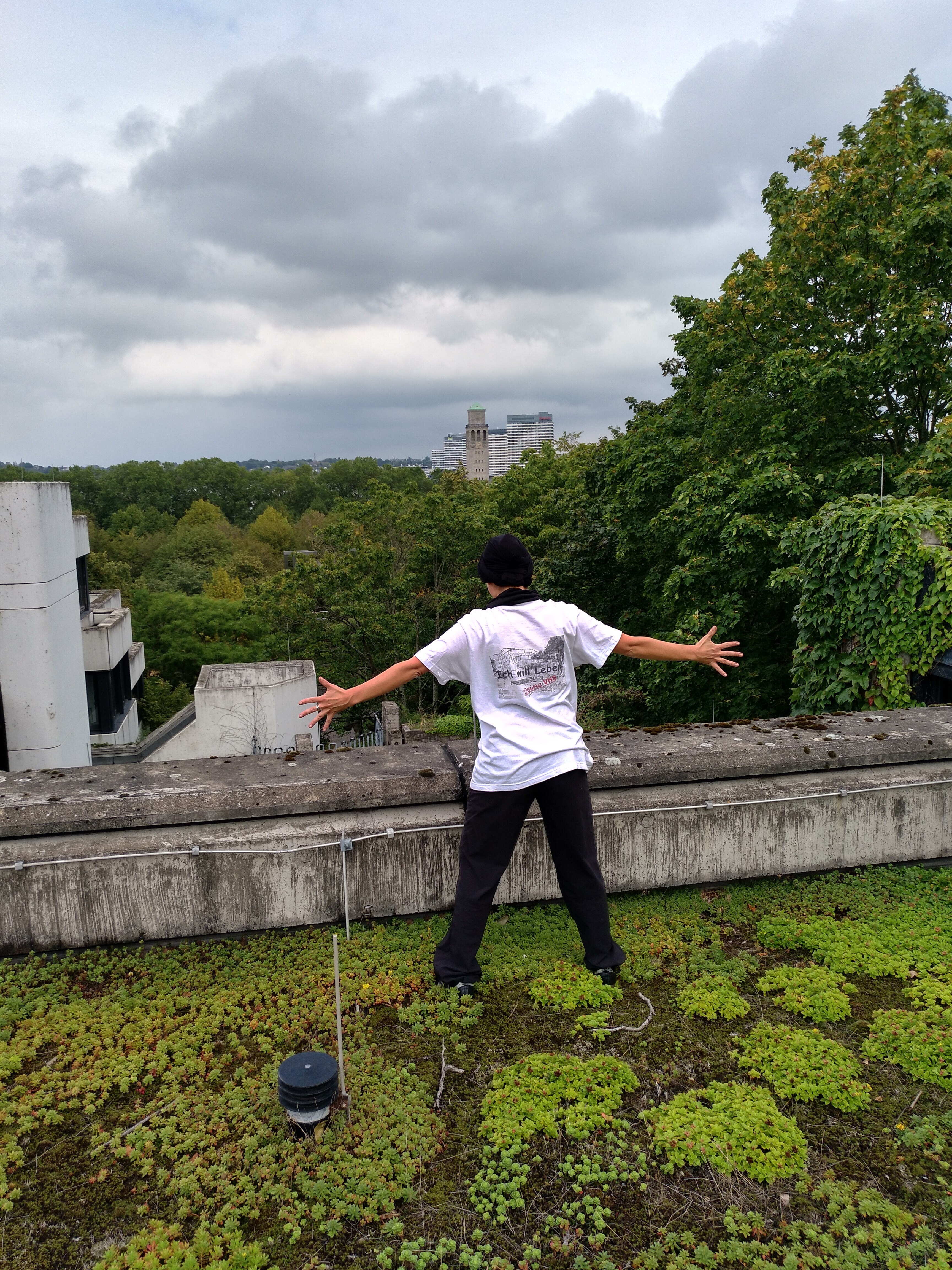Dach- und Fassadenbegrünungen gelten längst als anerkannte Maßnahmen gegen den urbanen Klimawandel. Sie erzielen Kühlungseffekte, halten Starkregen zurück und bieten Rückzugsbereiche für Vögel und Insekten. Die Stadt selber fordert private Immobilien-eigentümer auf aktiv zu werden, handelt jedoch bei ihrem eigenen Bestand wenig zukunftsträchtig. Die Volkshochschule an der Bergstraße erhielt bereits in den 90er Jahren ihr einmaliges, 1.700 m² großes, Gründach. Hinzu kommen weitere Pflanzbereiche auf den Terrassen. Diese weitsichtigen Investitionen werden schon lange nicht mehr gepflegt.