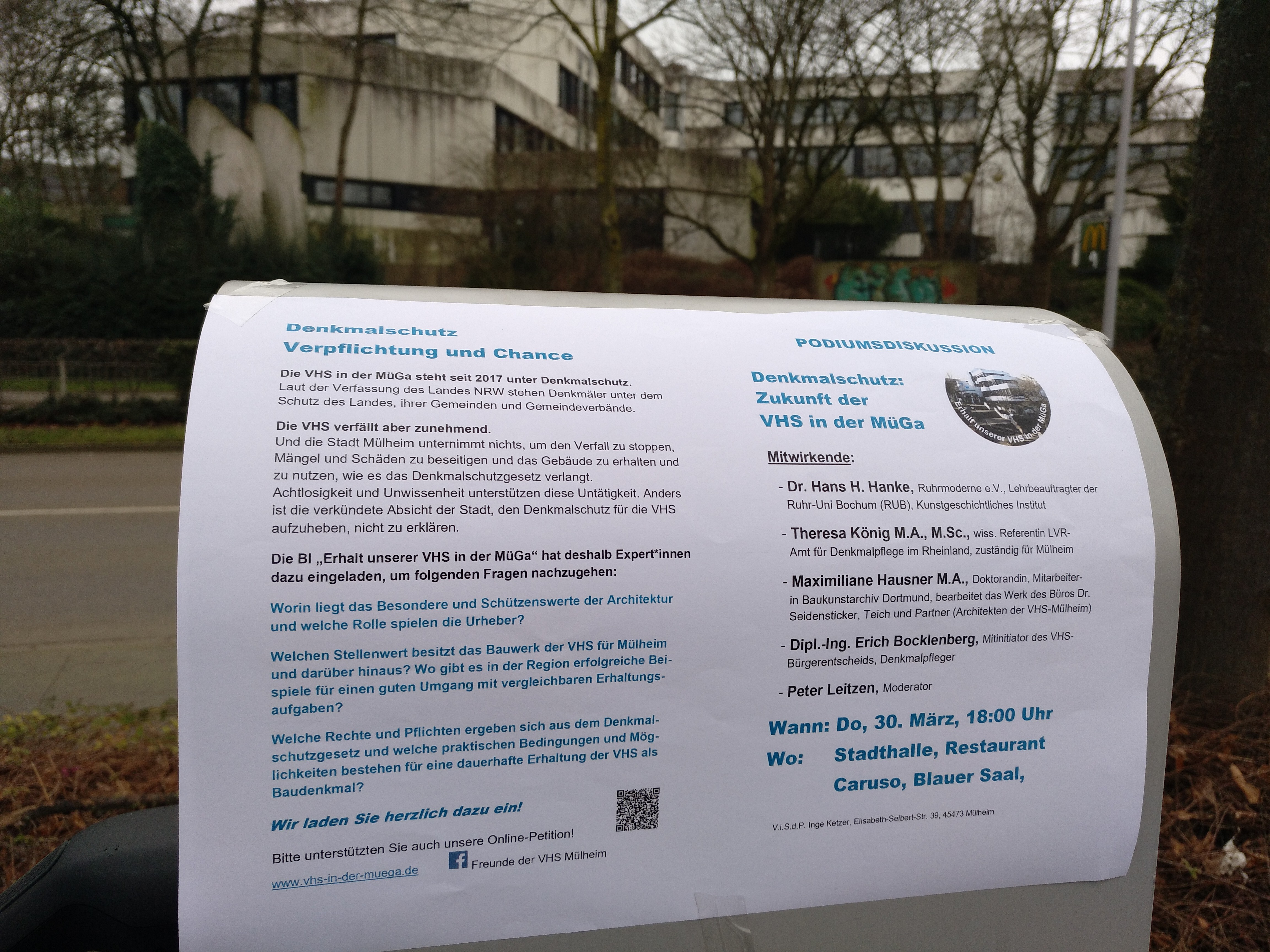 VHS in der MüGa endlich wieder instandsetzen / Bürgerentscheid und Denkmalschutz respektieren