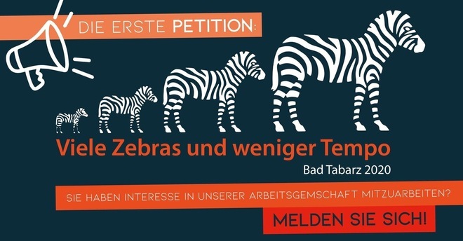 Am 30. Juli 2020 hat Hans-Georg Kellner die Petition „Viele Zebras und weniger Tempo“ gestartet. Es handelt sich dabei um die erste Petition über unser Petitions-Tool auf www.bad-tabarz.de. In den folgenden acht Wochen wurde die Petition von 342 BürgerInnen unterstützt. Von ihnen kamen 204 aus Bad Tabarz. Damit wurde das erforderliche Quorum von mindestens 170 Unterschriften locker erfüllt. Herzlichen Glückwünsch allen Beteiligten. In der Gemeinderatssitzung am 30. September 2020 wurde die Petition von Hans-Georg Kellner an Bürgermeister David Ortmann und den Gemeinderatsvorsitzenden Mario Peschke übergeben. Am 28. Oktober trafen sich Hans-Georg Kellner und David Ortmann und vereinbarten folgenden Fahrplan: