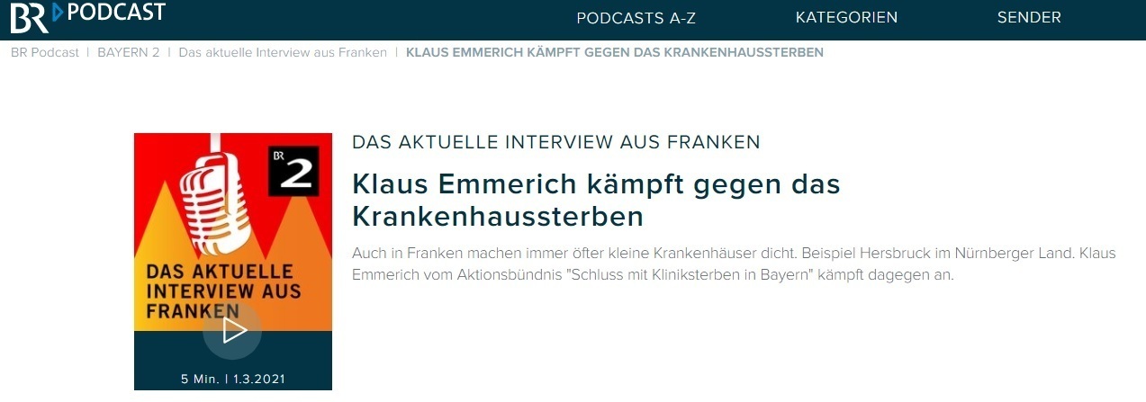 Am heutigen Montag erfolgte ein allgemeines Interview über das Kliniksterben im Bundesland Bayern.