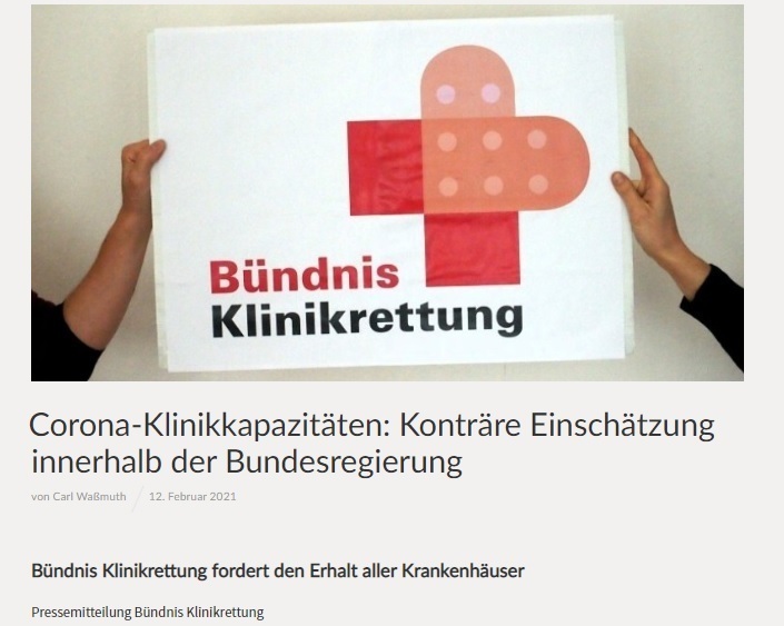 Nach langem Ringen ist es dem Bündnis Klinikrettung und der Aktionsgruppe "Schluss mit Kliniksterben in Bayern" nun gelungen, sich bundesweit bei der ARD-Sendung Plusminus - Kliniksterben in der Pandemie einzubringen und damit das Anliegen um flächendeckenden wohnortnahen Erhalt der Krankenhäuser mit anderen Betroffenen präsent zu machen