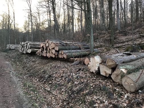 Leider wird nun auch dieses Jahr wieder, und zwar unbesehen der gegenwärtigen Diskussionen um ein Waldgremium und unabhängig davon, dass im letzten Sommer der Wald durch die zunehmende hitzebedingte Austrocknung und den Borkenkäferbefall erhebliche Schädigungen davon getragen hat (…und die Holzpreise eigentlich „im Keller“ sind) heftig weiter gefällt, als wenn keinerlei öffentliche Diskussion erfolgt wäre.