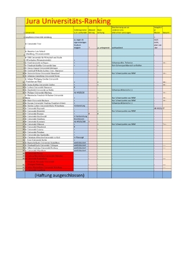 Hier habe ich ein unverbindliches Universitäts-Ranking für die Studiengang Rechtswissenschaften erstellt, die die Modalitäten bei den vollintegrierten Bachelor und Master of Laws berücksichtigt.