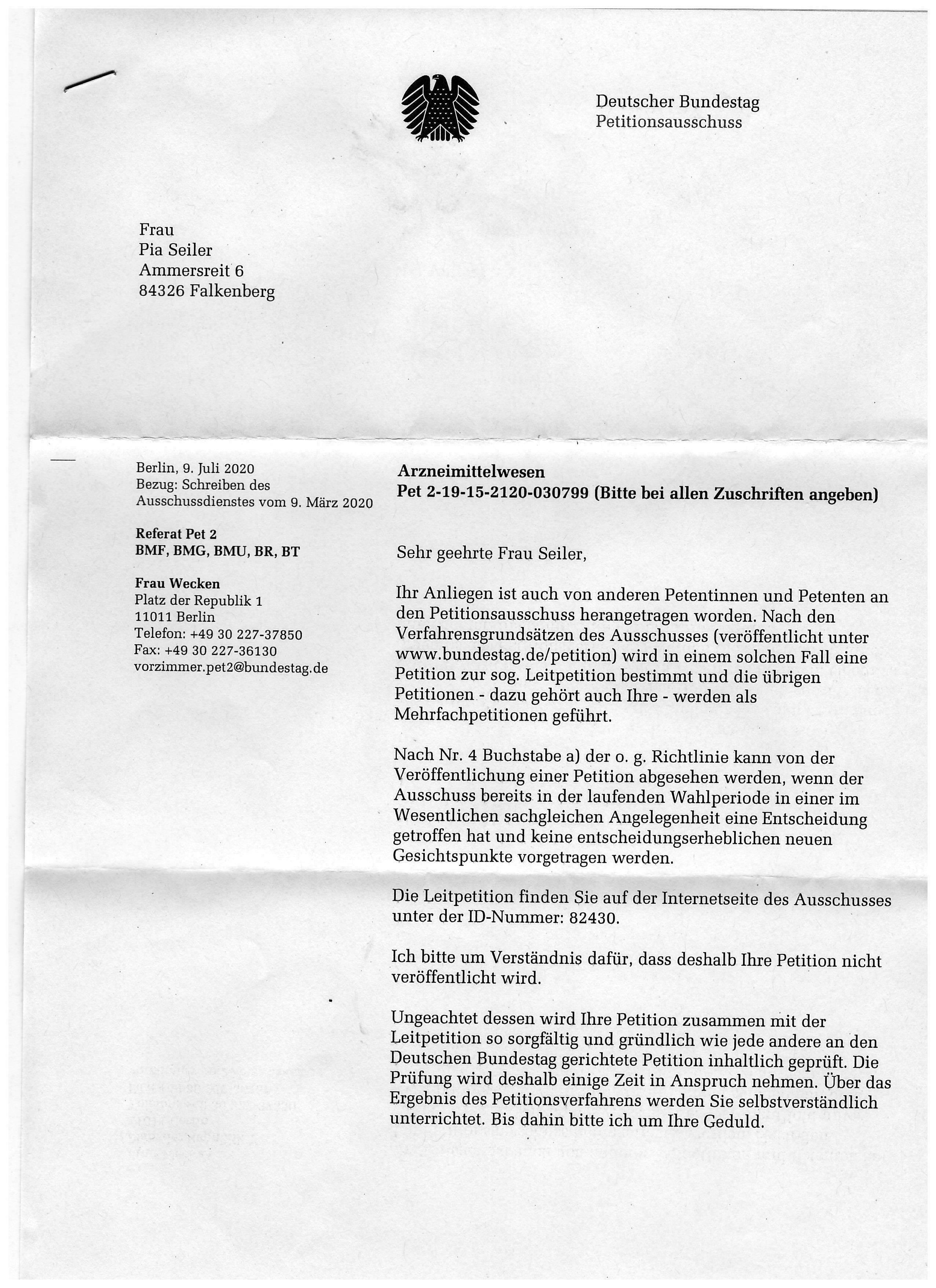 ich habe euch in den Anhang einige Dateien gehängt. Darunter meine Antwort vom Petitionsausschuss - man kann nicht erkennen, um welche Petition es sich handelt und meine Anzeige.