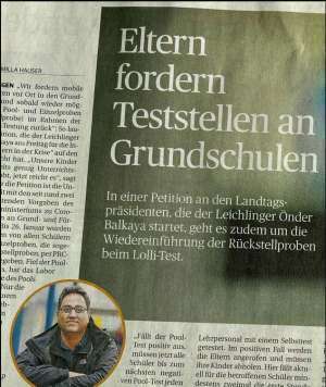 „Wir fordern mobile Testzentren vor Ort in den Grundschulen und sobald wieder möglich PCR Pool- und Einzelproben (Rückstellprobe) im Rahmen der PCR-Lolli-Testung zurück“: So lautet die Petition, die der Leichlinger Önder Balkaya am Freitag für die Initiative „Eltern in der Krise“ auf den Weg gebracht hat. „Unsere Kinder haben bereits genug Unterrichtsausfall gehabt, jetzt reicht es“, sagt er. Grund für die Petition ist die Unzufriedenheit mit den seit rund zwei Wochen geltenden Vorgaben des NRW-Schulministeriums zu Corona-Testungen an Grund- und Förderschulen.