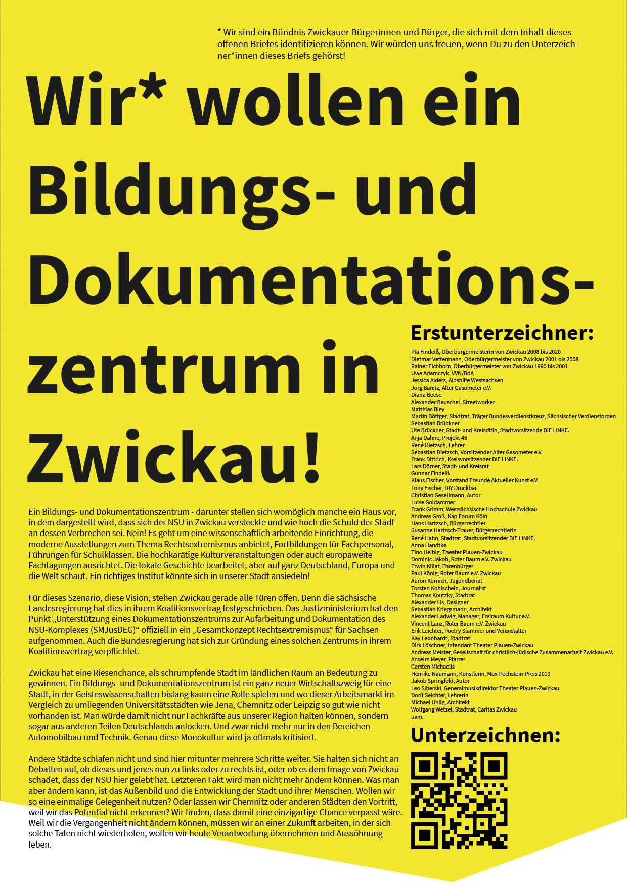 * Wir sind ein informelles Bündnis Zwickauer Bürgerinnen und Bürger, die sich mit dem Inhalt dieses offenen Briefes identifizieren können. Wir würden uns freuen, wenn Du zu den Unterzeichner*innen dieses Briefs gehörst!