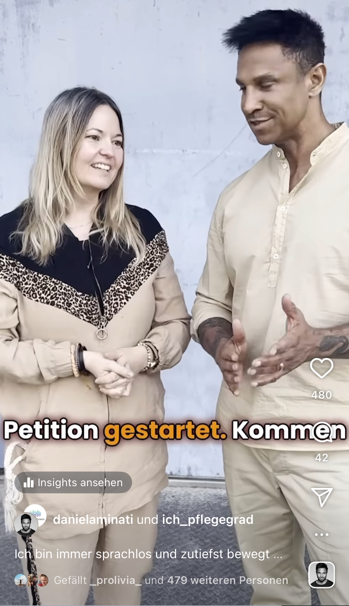 Als Daniel dann von unserer Geschichte, unserer Tochter und dieser Petition erfahren hat, wollte er sofort helfen und hat seine Unterstützung angeboten. Mit Daniels großer Reichweite (244.000 Follower) schafft er es mit einem Reel bei Instagram Tausende Menschen zu erreichen und informieren. Nach unserer Schicht bei taff haben wir ein kleines Interview aufgenommen und Daniel hat sich unheimliche Mühe gemacht den kleinen Film mit Bildern unserer Tochter und der Petition zu unterlegen. Einfach so, einfach weil er unterstützen möchte.