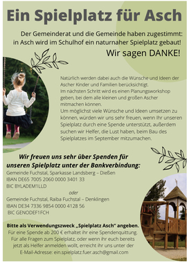 Bürgermeister und Gemeinderat haben zugestimmt, in Asch wird ein Spielplatz gebaut!