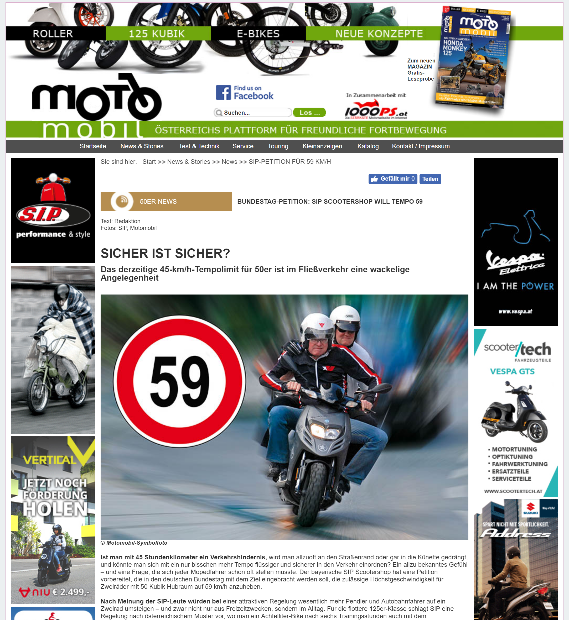 Das österreichische Zweirad Magazin "Moto Mobil" unterstützt die Petition mit einem eigenen Beitrag: motomobil.at/newsstories/news/931-sip-petition-59-kmh