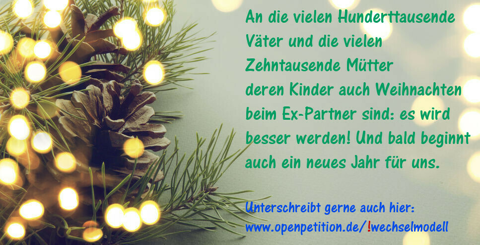 Neuer Petitionstext: Das Wechselmodell (Zeitanteile von 30:70 bis 50:50) soll eingeführt werden, wenn zumindest ein Elternteil dies will und die beiden Elternteile nahe genug beieinander leben, sowie sie dies beruflich umsetzen könnten.