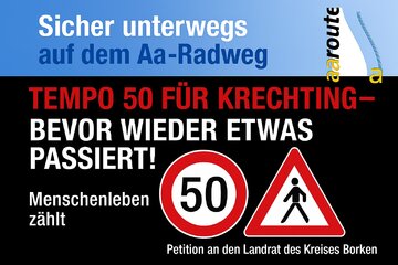 თქვენი შემოწირულობის წყალობით, openPetition შეუძლია კიდევ უფრო მეტი გააკეთოს პეტიციისთვის „Tempo 50 auf der Krommerter Straße (L 611) in Krechting – bevor wieder etwas passiert!“.